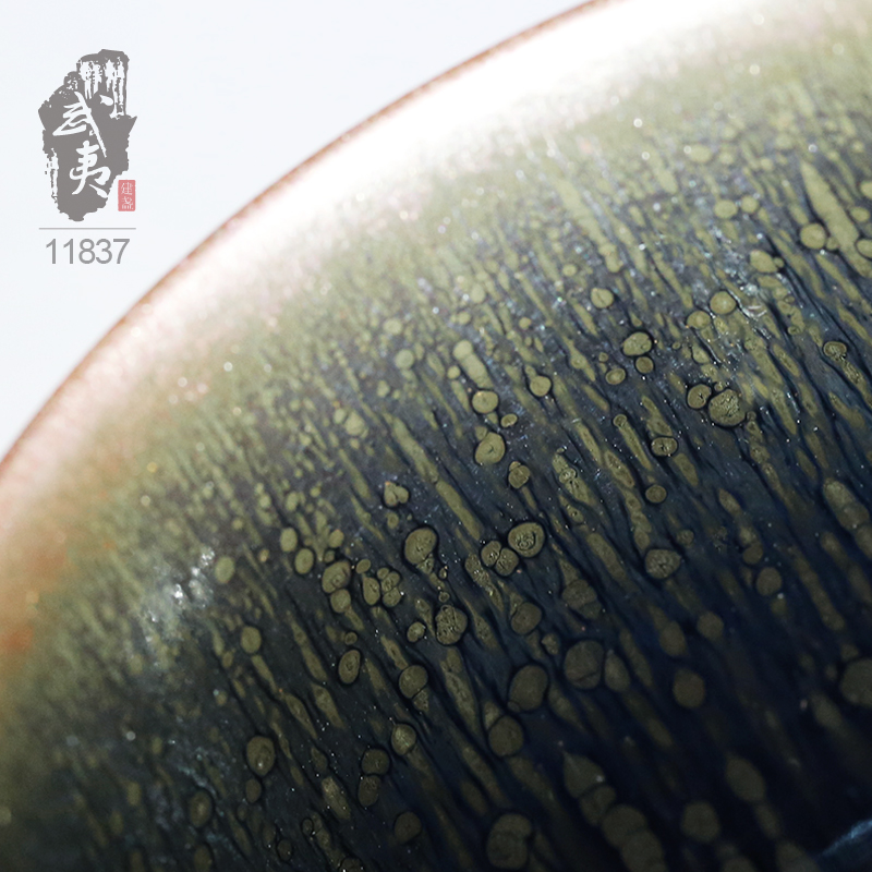 建盏界老一辈工艺师,其烧制的油滴盏,胎土纯正,器型圆润,斑纹饱满,色泽蓝中带银,十分优雅。