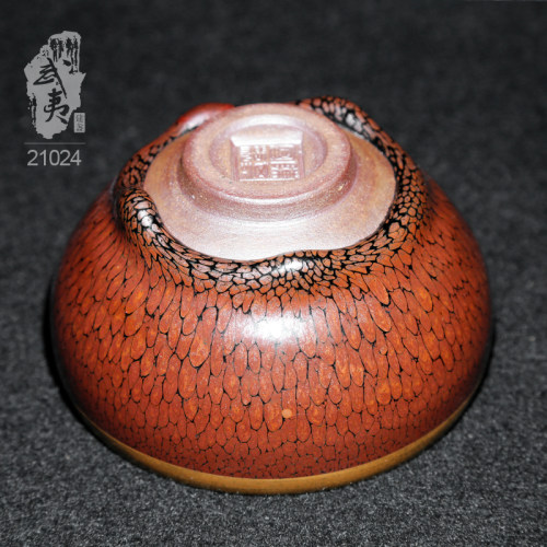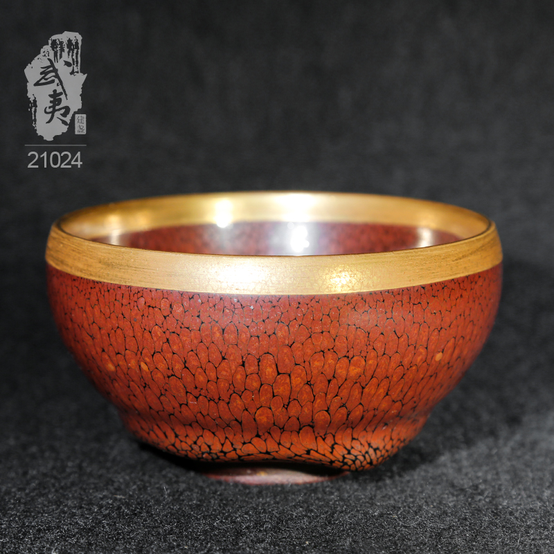 建盏大师陈其富,金扣柿红鹧鸪钵形盏