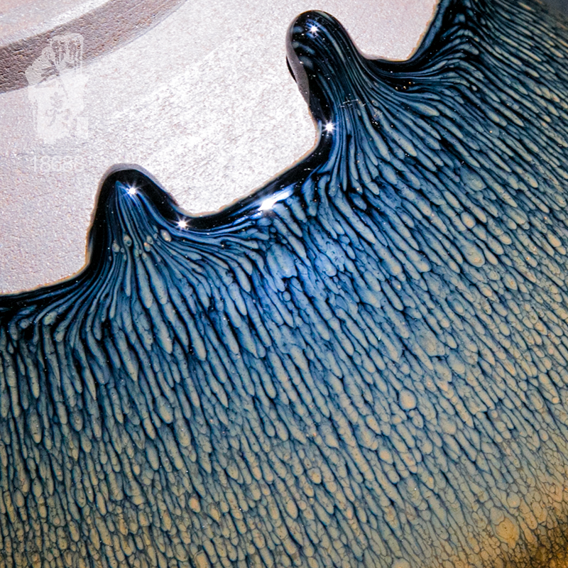 叶礼旺专注兔毫盏技艺研究多年,传承宋代生胚上釉、地方原矿釉和草木灰配釉的传统工艺。烧制的兔毫盏胎土纯正,釉色温润,器型优雅,兔毫斑纹清晰密布,丝丝相连,尤其擅长大盏的制作。古法技艺下产出的兔毫盏,毫丝立体,铁胎独特,干口有度,与宋代兔毫盏极为相似,曾被授予“优秀宋盏制作人”的称号。