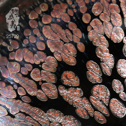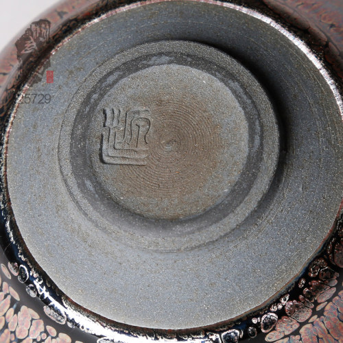 裴春元所做仿古建盏形似神似宋盏,深得藏家喜爱。其所制建盏胎骨厚重,含铁量高,器型流畅,釉面温润,釉光澄澈,透出浓浓古韵。他尤其擅制鹧鸪斑盏,其斑点密致、斑纹清晰、斑块晶莹,深受建盏爱好者所喜爱。