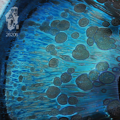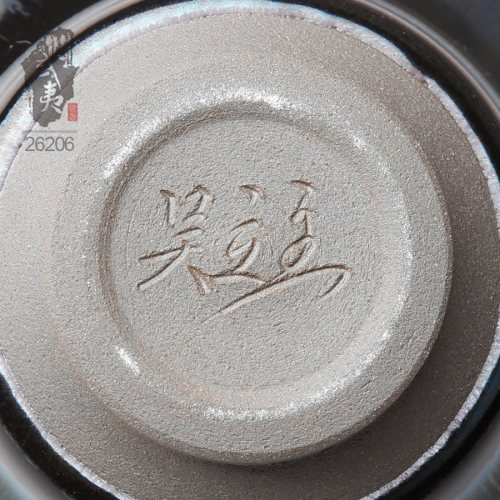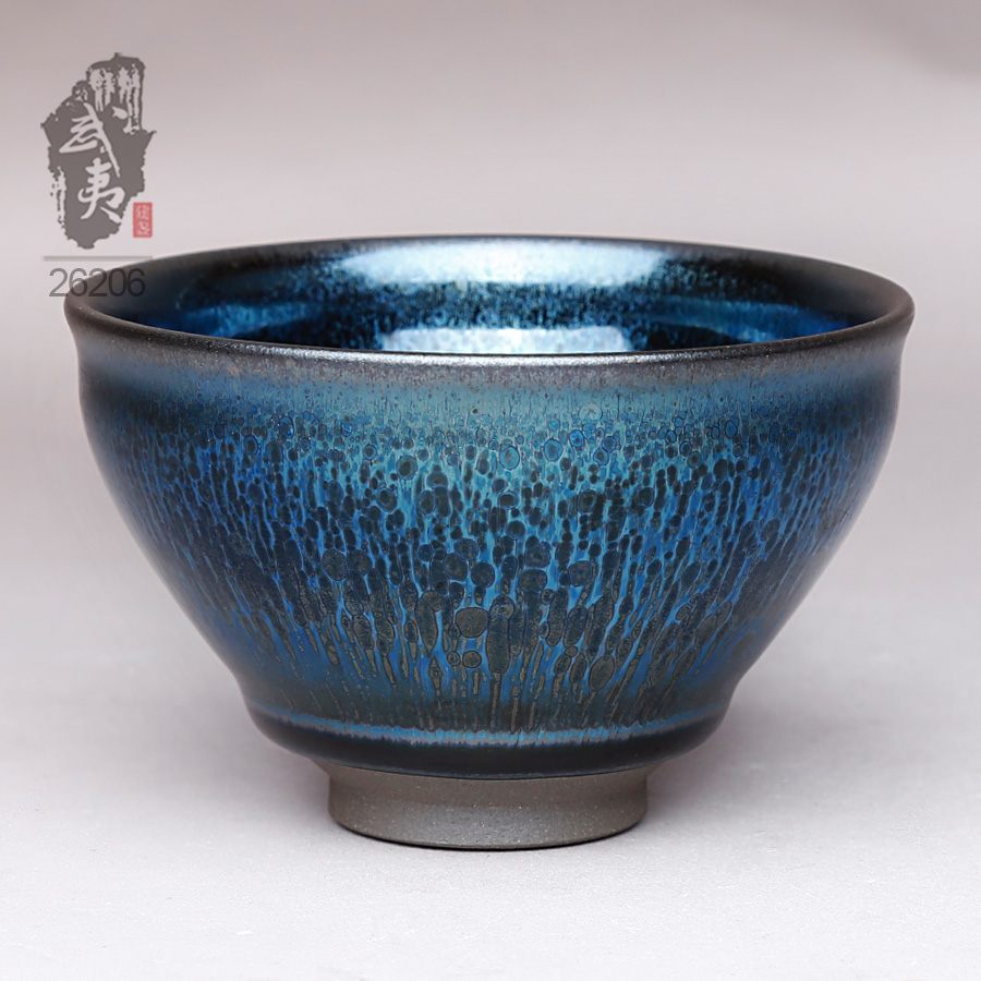 建盏界老一辈工艺师,其烧制的油滴盏,胎土纯正,器型圆润,斑纹饱满,色泽蓝中带银,十分优雅。