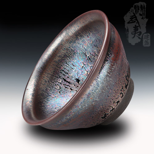 建盏大师裴春元,彩金束口盏