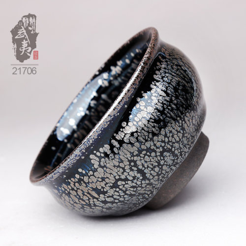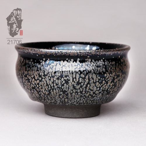 秉承古法,手工创作,专心致志研究黑釉油滴建盏。作品釉色浓黑,油滴斑纹圆润、立体,边界清晰,银光纯净,玻化完整,口沿可见星点小斑。亲自调配釉料,保证绿色环保,健康无害。其作品曾在“《厦航杂志》头等舱专用版”刊登过,参加过“上海泛华2016春季艺术品拍卖会”,先后被陕西省西安博物院、西安法门寺、中国茶叶博物馆等机构收藏。