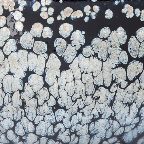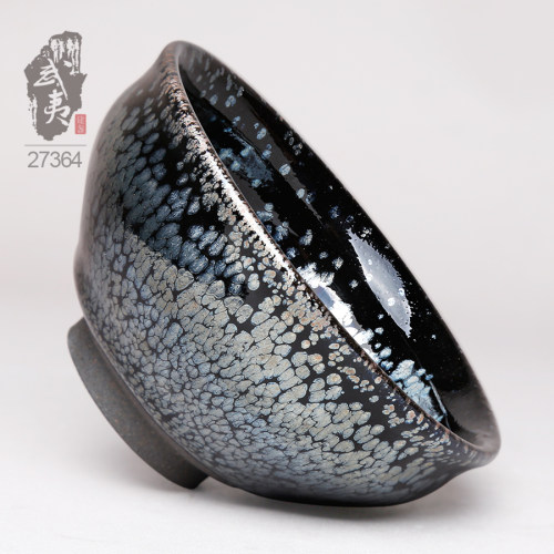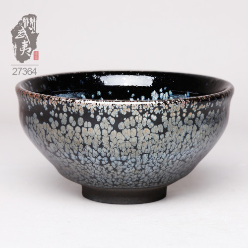 秉承古法,手工创作,专心致志研究黑釉油滴建盏。作品釉色浓黑,油滴斑纹圆润、立体,边界清晰,银光纯净,玻化完整,口沿可见星点小斑。亲自调配釉料,保证绿色环保,健康无害。其作品曾在“《厦航杂志》头等舱专用版”刊登过,参加过“上海泛华2016春季艺术品拍卖会”,先后被陕西省西安博物院、西安法门寺、中国茶叶博物馆等机构收藏。
