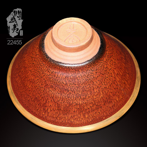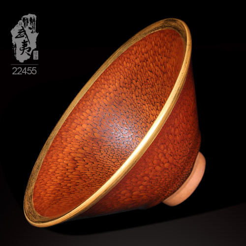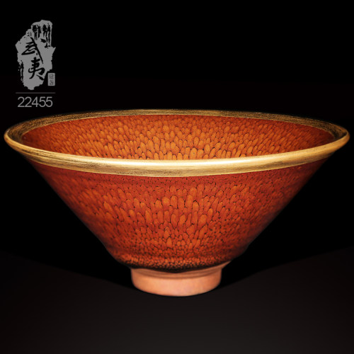 建盏大师陈其富,金扣柿红鹧鸪斑喇叭碗