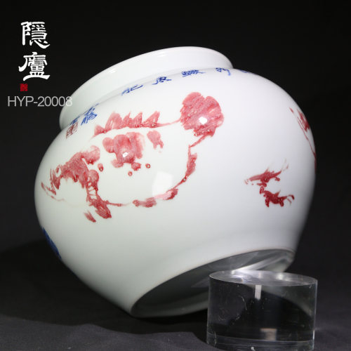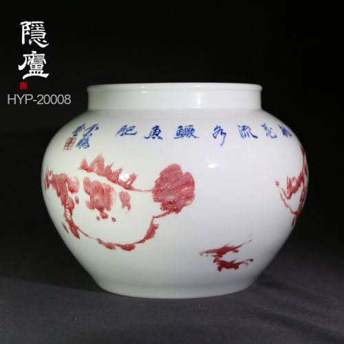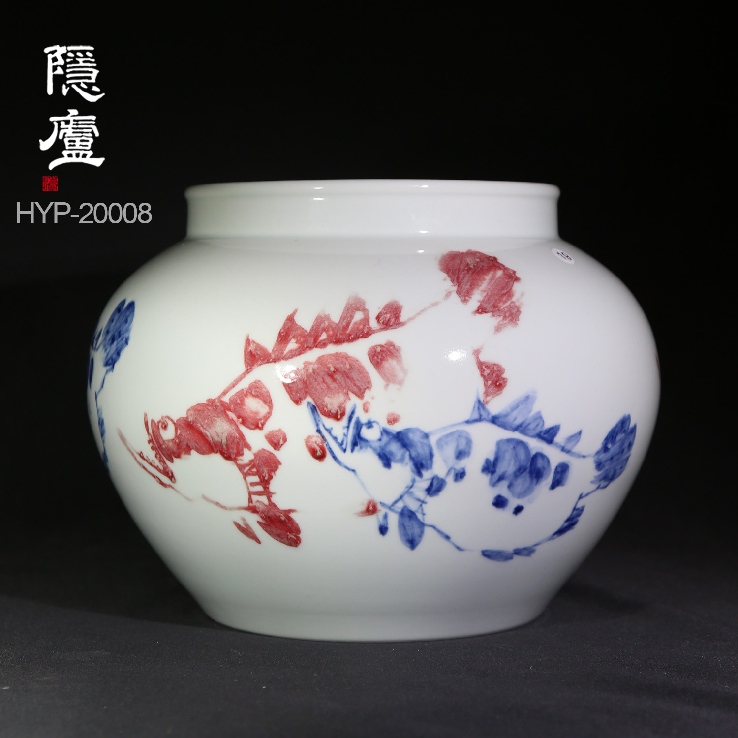 青花黄云鹏,青花釉里红鳜鱼纹罐