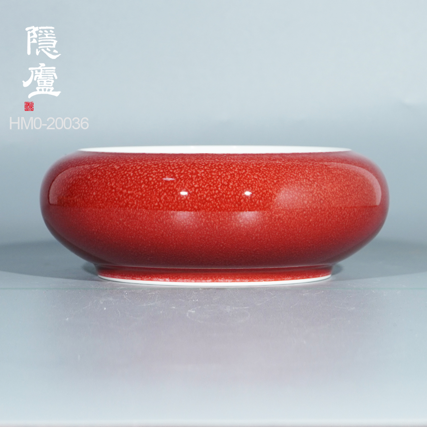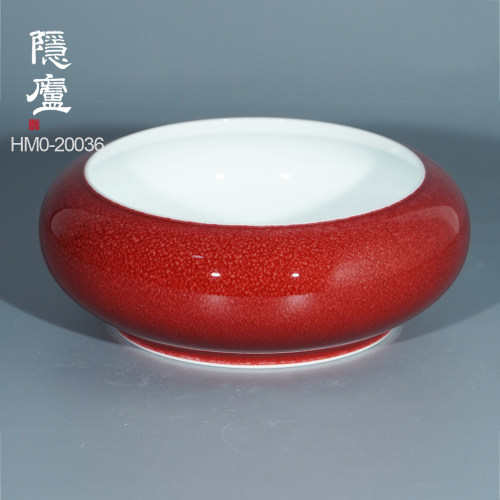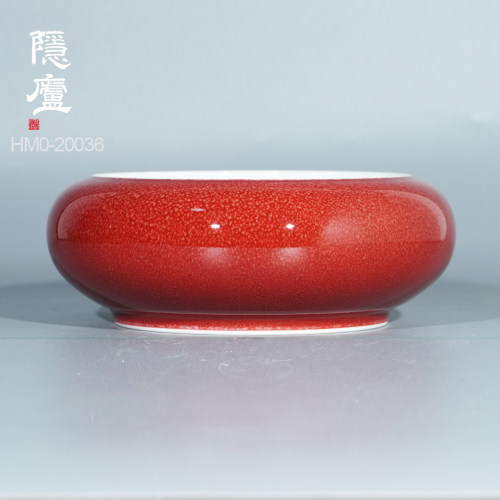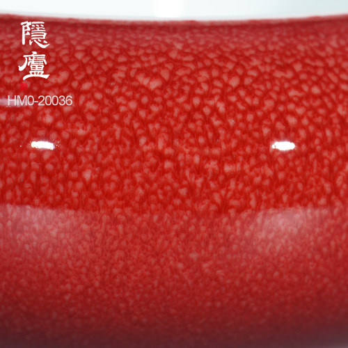 “脱口垂釉郎不流,牛毛开片非宣红”这是行业里对贡品级郎红特征的总结,简而言之,便是器物口沿呈一环露白,釉料垂流止于底而不过足,凝聚出鸡翅木纹;釉色层次分明,纹如牛毛,釉面带有冰裂纹,整器之红渐而万变,艳而不俗。贡品级郎红的烧制讲究天时地利人和,实属不易,故诸多逐利商人以化学品替代原矿釉料,致品相参差不齐。胡旻恪守本心,严于律己,不惜废万品,用实际行动守护传承下来的郎红技艺。