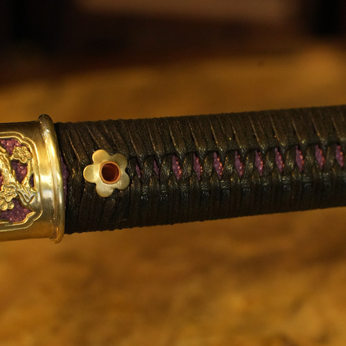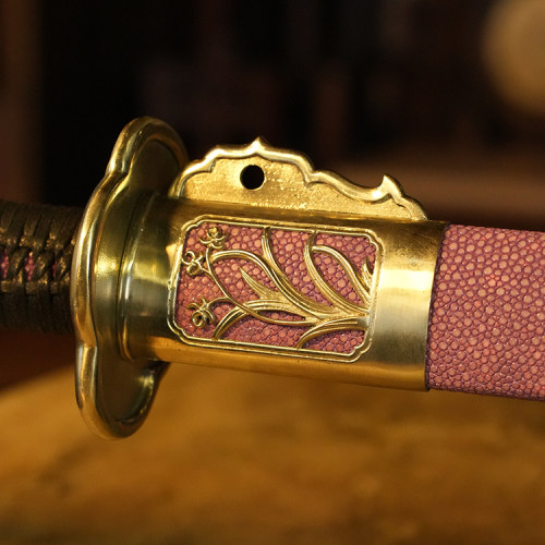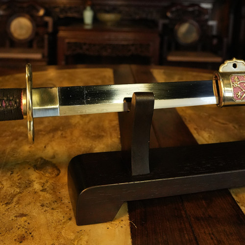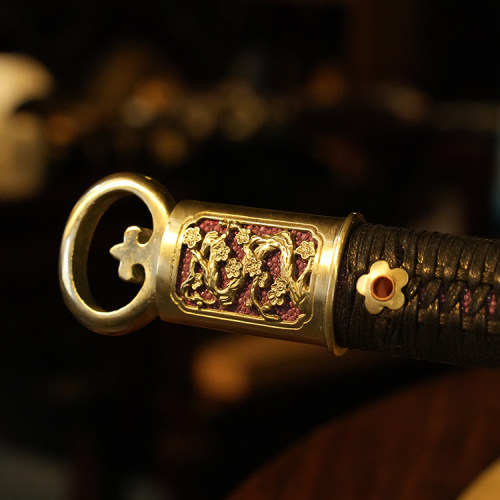 材质:古法锻制毛铁剑身,白铜手工精雕刻外装,紫鱼皮木鞘