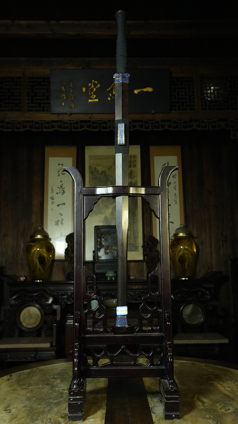 材质:古法锻制毛铁剑身,古法珐琅外装,上等黑檀木木鞘
