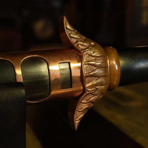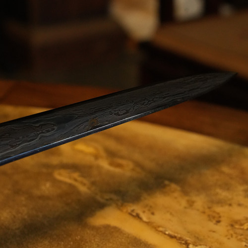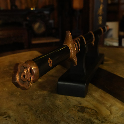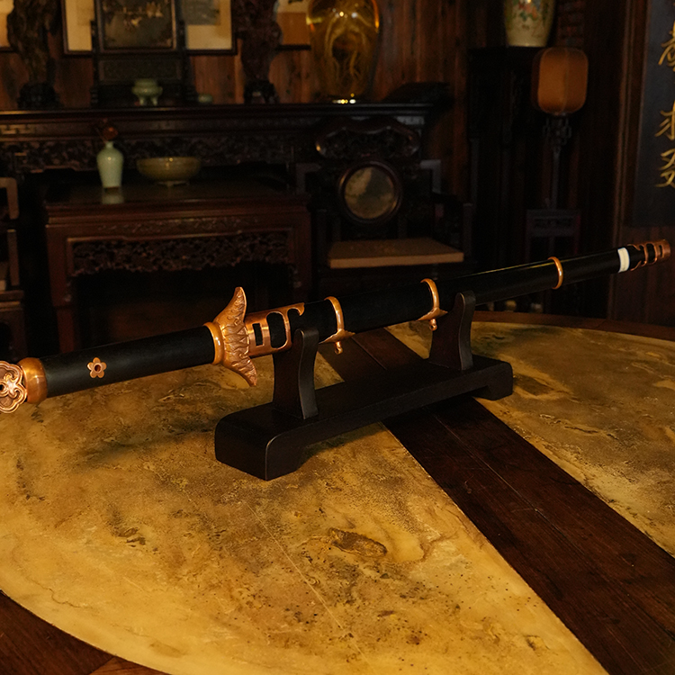 材质:古法锻制陨铁剑身,铜质地,手工精雕外装,上等黑檀木剑鞘
