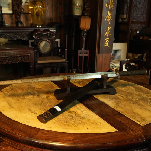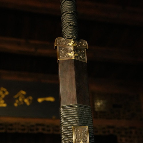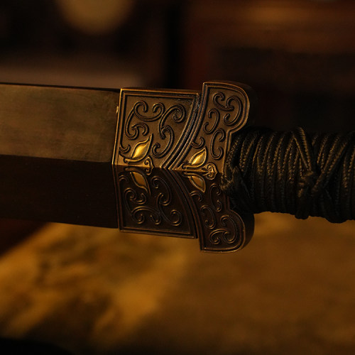 材质:大马士革工艺剑身,黄铜装质地、手工雕外装,上等黑檀木剑鞘
