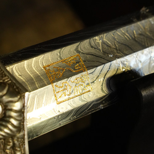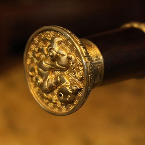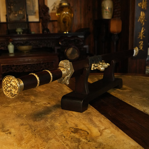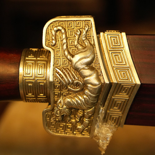 材质:古法锻制毛铁草钢剑身,白铜手工精雕刻外装,上等黑檀木